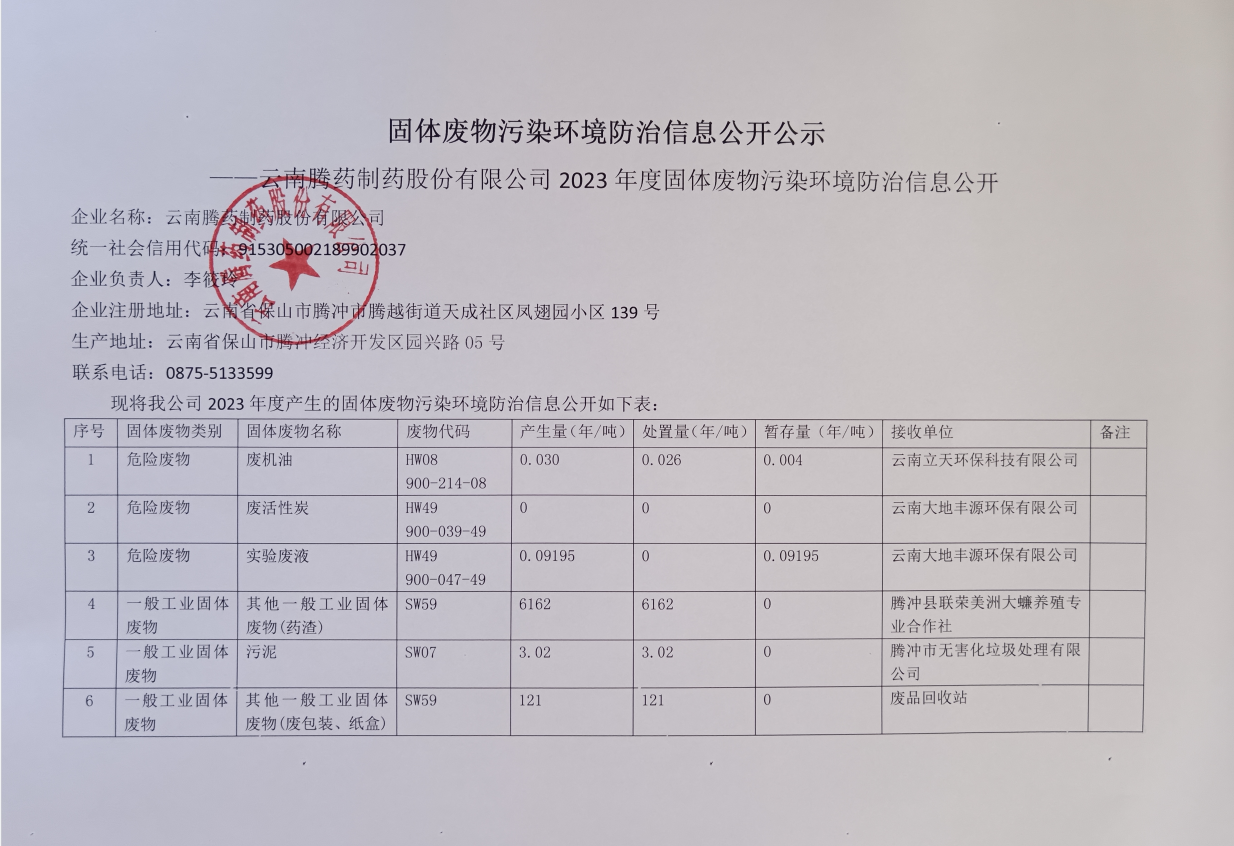 固體廢物污染環境防治信息公開公示